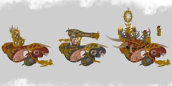 那些做出了超凡殺戮的軍鋒則會(huì)獲贈(zèng)鮮血王座,這種強(qiáng)大的惡魔引擎身披黃銅護(hù)甲,以足以碾碎所有當(dāng)面之?dāng)车蔫F蹄之輪馳入戰(zhàn)場。