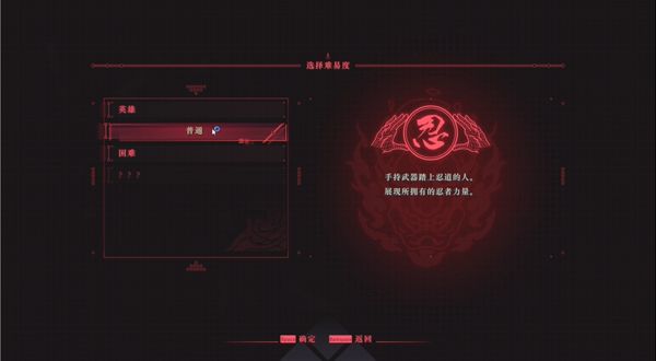 劇情開始,我們先選擇難度,玩家可以優(yōu)先體驗普通難度,普通難度以上通關(guān)之后都會有評分判定,會根據(jù)你當(dāng)前戰(zhàn)斗次數(shù)和是否無傷來給評級。(目前小編還在中忍)