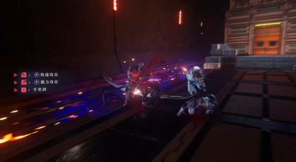 每次開門后,都會出現(xiàn)新的敵人,這也是幫我們更好的去熟悉人物技能,此作中主角擁有兩種攻擊方式,雙刀和太刀,太刀則需要我們按住ctrl然后使用左右鍵才能打出名叫“奴延鳥之型”的招式。