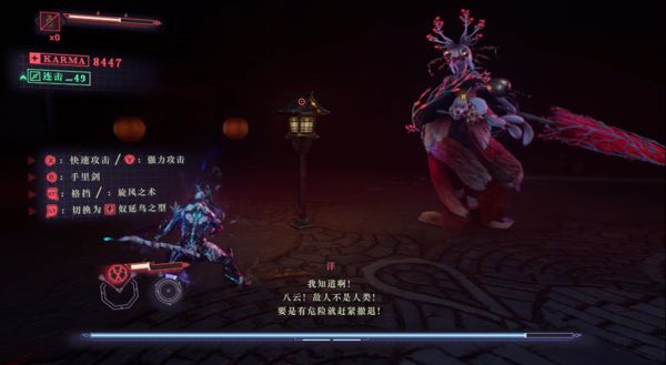 來(lái)到通往祭 壇的道路門口,但是卻遇到了守護(hù)封印的敵方妖魔,她察覺(jué)到我們靠近之后,打算在門口就攔截我們。