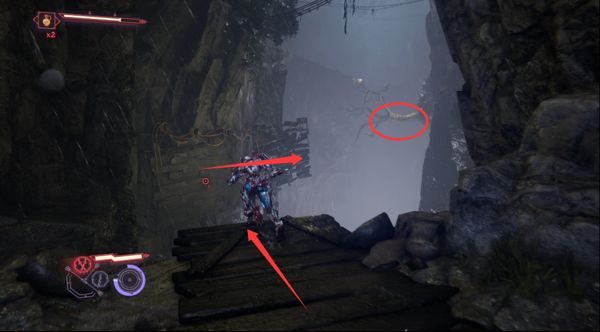 就在我們即將通過下一個(gè)橋梁時(shí),橋梁被風(fēng)擊破,導(dǎo)致我們掉落至谷底。