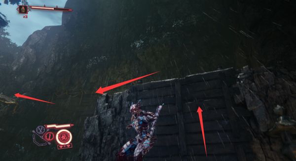到達(dá)懸崖口,被暴風(fēng)阻攔,選擇向右出發(fā)。