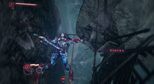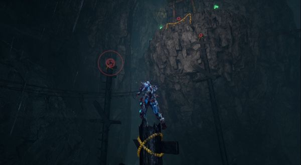 在隨后,我們的道路會被巨石破壞,然后急速墜落,此時注意滑索位置。