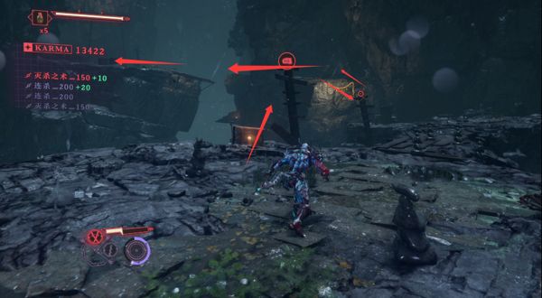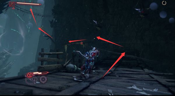 出門后往右側(cè)直行,借助鉤鎖到達(dá)平臺。