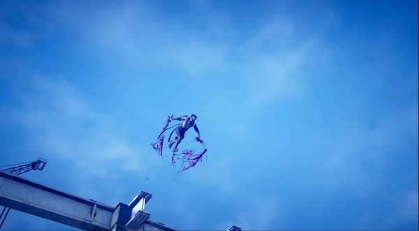 在場景內(nèi)使用鉤鎖和滑翔能力向樓頂?shù)暮邶埼恢们斑M(jìn)。