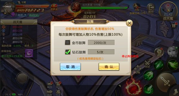 鼓舞可以增對天魔的傷害