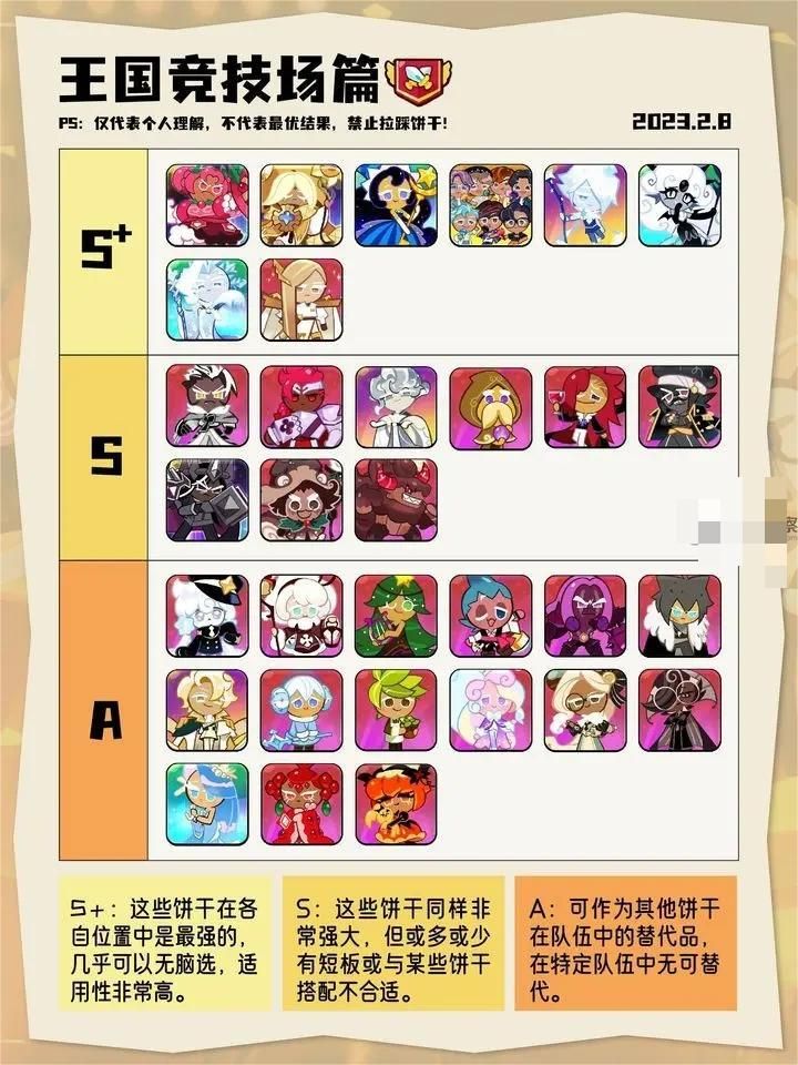 3、因?yàn)樵鲁醯慕K測和這次公測不一樣,沒有可麗餅,所以圍繞up餅干金桂建隊(duì)是最理想的。配隊(duì)需要看你的投入和產(chǎn)出,有哪些就用哪些。例如紫蘑菇因?yàn)閾碛懈哳~的debuff,在pve/pvp/公會戰(zhàn)都可以上場,比較推薦培養(yǎng),還有幾張幾張魔法餅干,濃縮咖啡 拿鐵 墨魚 芒果(個(gè)人強(qiáng)度按順序排列)也是很值得培養(yǎng)的。