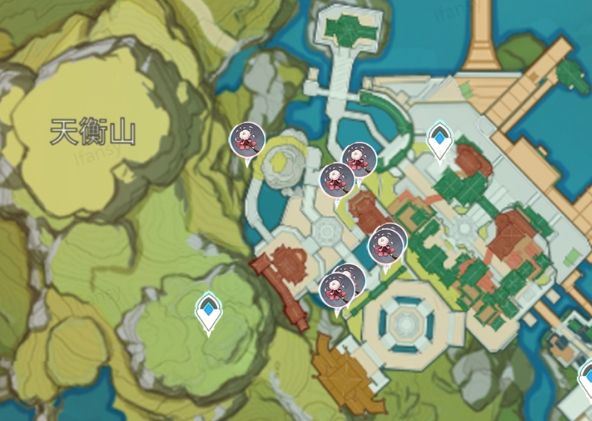 2、璃月港里面,推薦從下圖天衡山傳送點(diǎn)過(guò)去,可以順便采集琉璃百合。