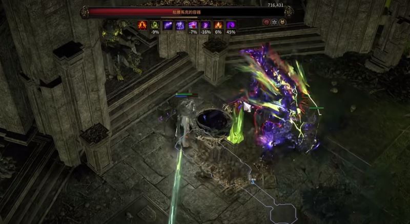 點(diǎn)擊這里的大門(mén),走到盡頭可以看到一個(gè)儀式臺(tái),觸發(fā)boss骷髏馬克的容器,打敗這個(gè)boss。