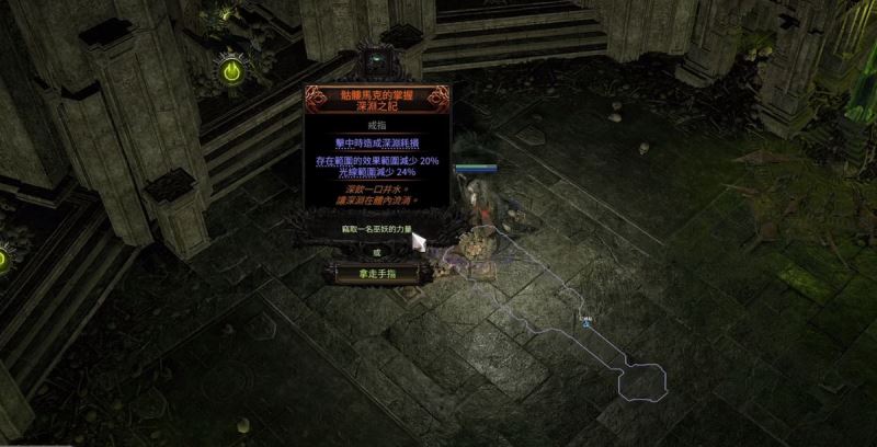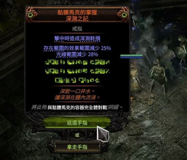 擊敗以后會(huì)出現(xiàn)骷髏馬克的掌握深淵之記,下面有著兩個(gè)選項(xiàng),分別是竊取一名巫妖的力量或者拿走手指。