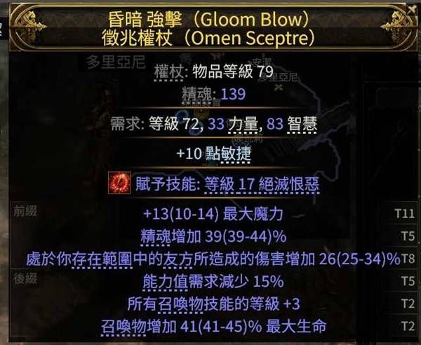 武器:權杖,骷髏權杖最優(yōu),詞綴召喚物等級+3以上,精魄越高越高,召喚物生命,周圍友軍傷害等