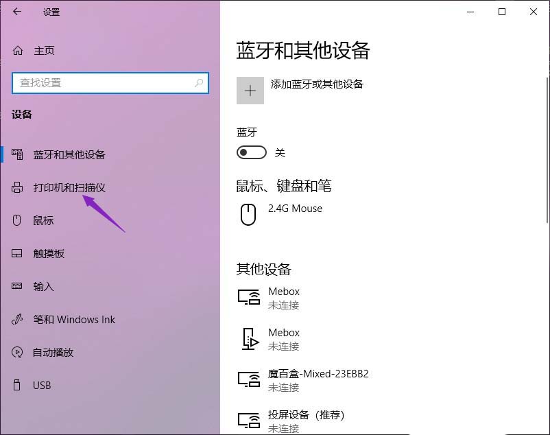4、之后我們點(diǎn)擊打印機(jī)和掃描儀;
