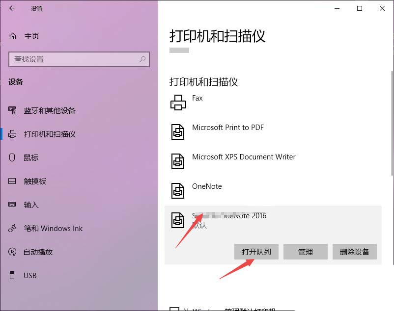5、然后點(diǎn)擊打印機(jī),之后點(diǎn)擊打開(kāi)隊(duì)列;