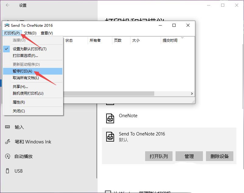 6、然后我們點(diǎn)擊打印機(jī),之后我們點(diǎn)擊暫停打印就可以了。