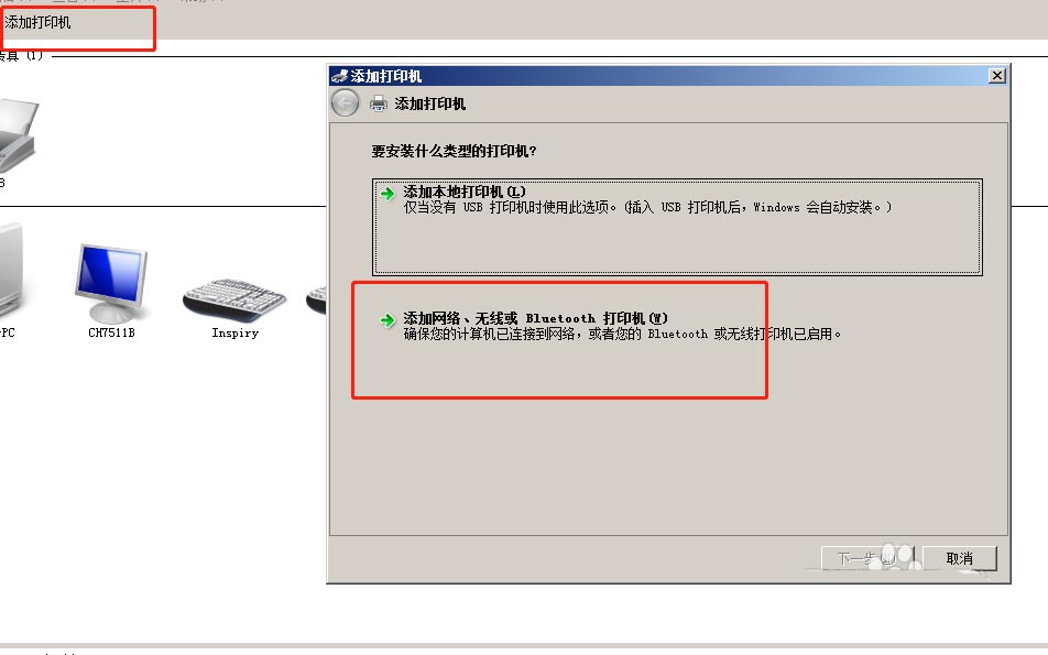 5、進去以后,點擊添加打印機,再點擊添加無線打印機,如圖所示: