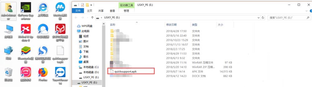 2、其次,在電腦端下載好Quicksupport.APK文件,放置U盤中,并插入投影儀中。