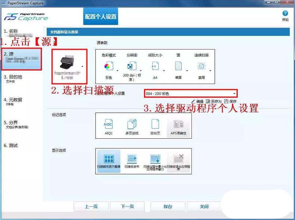 5、點(diǎn)擊【源】,選擇掃描源,接著選擇【驅(qū)動(dòng)程序個(gè)人設(shè)置】