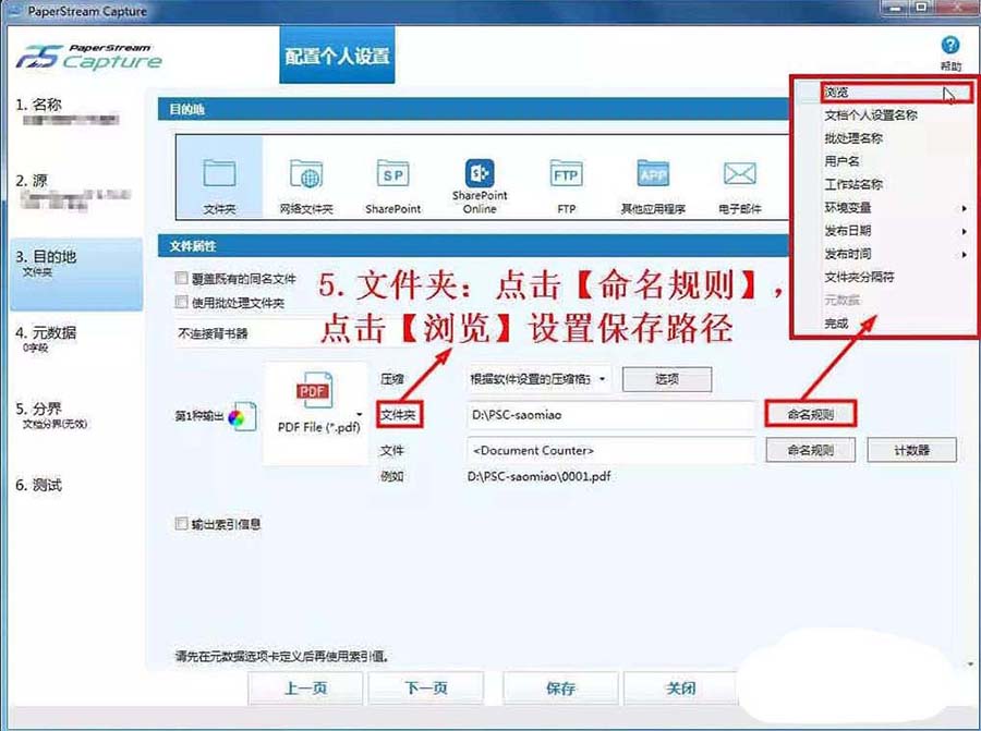 8、設(shè)置文件夾,點(diǎn)擊【命名規(guī)則】,點(diǎn)擊【瀏覽】設(shè)置保存路徑,如下圖所示: