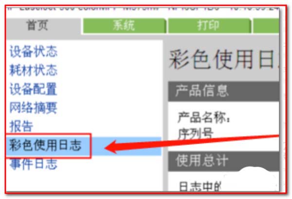 6、接下來把復(fù)制的IP地址粘貼到瀏覽器上,點(diǎn)擊搜索;打開后在“首頁”下點(diǎn)擊“彩色使用日志”。