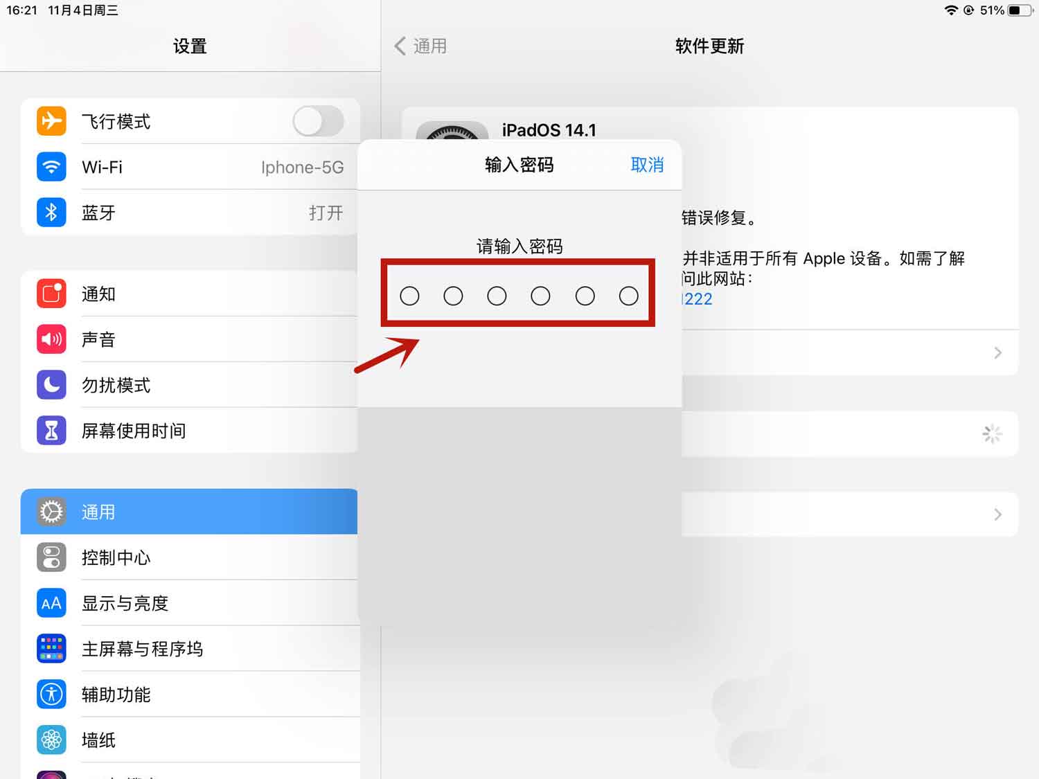 5、輸入iPad的密碼開始安裝升級系統(tǒng)。