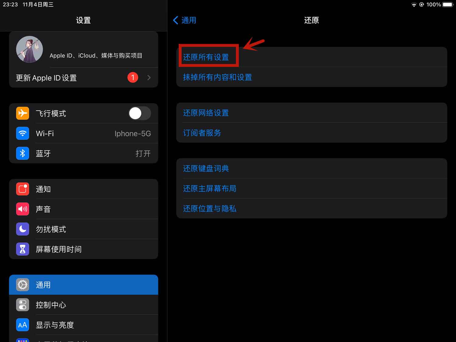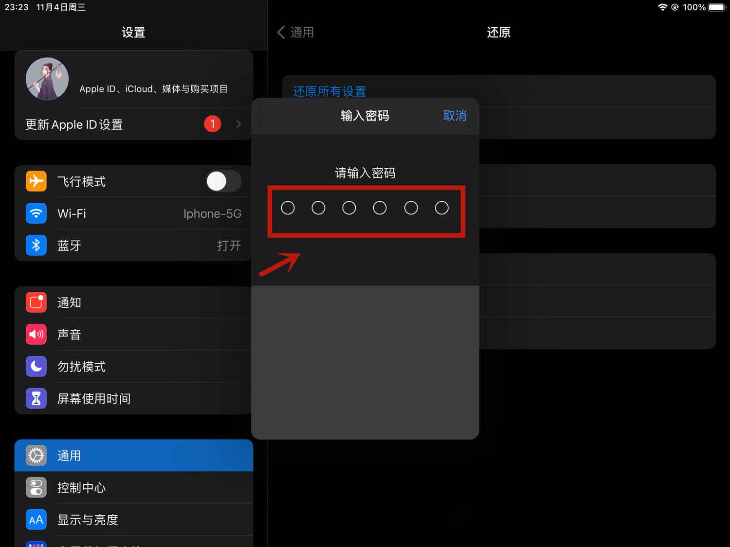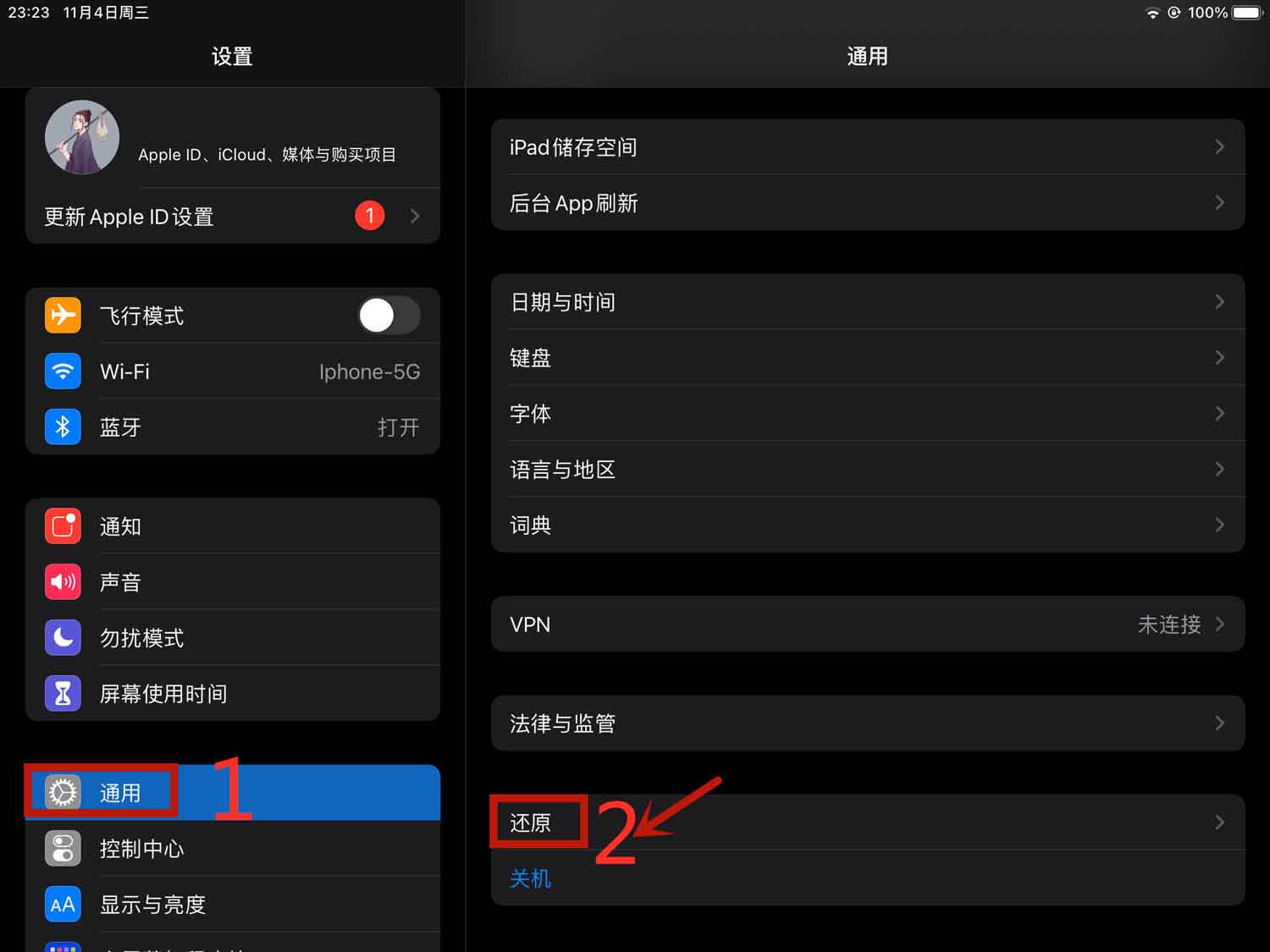1、打開【設(shè)置 -- 通用 -- 還原】。