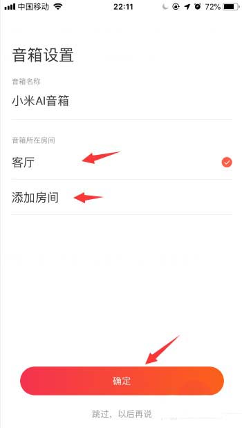 5、然后根據(jù)提示,定義小愛音箱所在的位置,不同的場景設置將會呈現(xiàn)不同的播放形式,客廳模式聲音會大些,臥室則會安靜些。