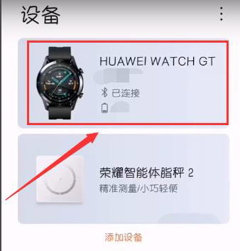 2、進(jìn)入運(yùn)動(dòng)健康首頁(yè),點(diǎn)擊“設(shè)備”選擇已連接的華為手表。