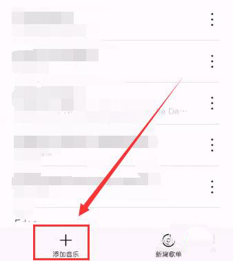 5、音樂(lè)列表界面,點(diǎn)擊左下方”添加音樂(lè)“。
