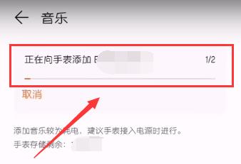 7、正在向手表添加音樂(lè),傳送完成,華為手表添加音樂(lè)成功。