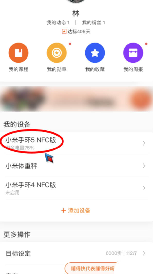 2、進(jìn)入后,選擇綁定的小米手環(huán)5設(shè)備進(jìn)入