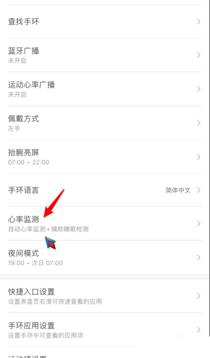 3、進(jìn)入后,點(diǎn)擊心率監(jiān)測的選項(xiàng)進(jìn)入