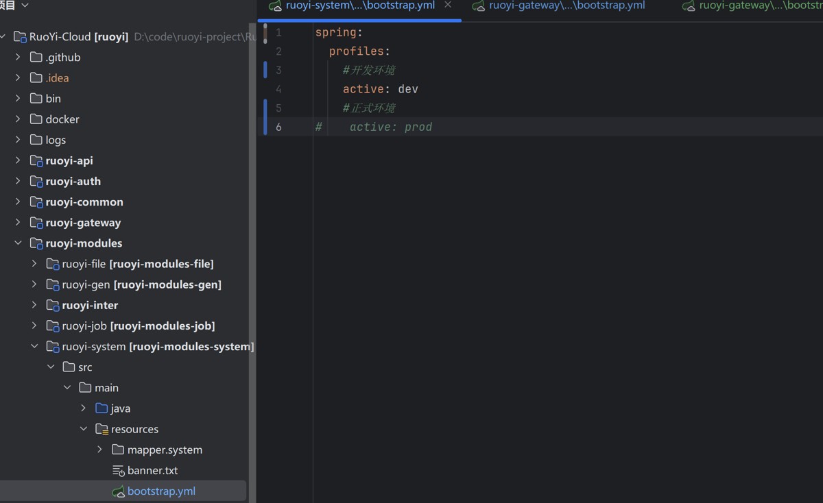 ruoyi-cloud通過(guò)bootstrap.yml文件設(shè)置多環(huán)境配置