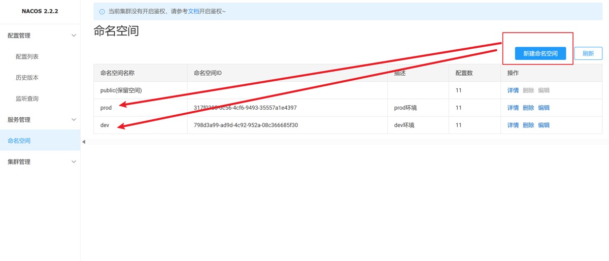 1.2 創(chuàng)建兩個(gè)命名空間dev、prod