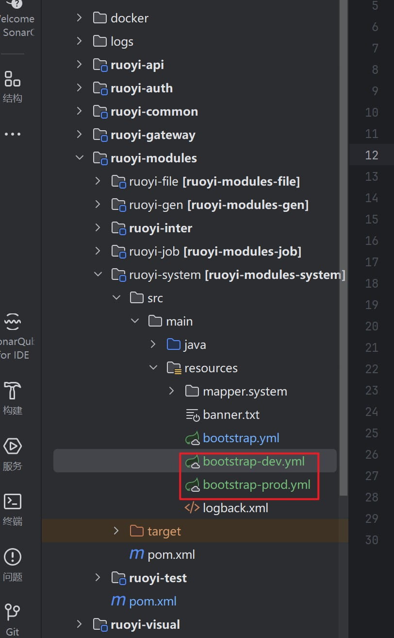 最近在學(xué)習(xí)ruoyi-cloud框架,發(fā)現(xiàn)在部署上線的時(shí)候要設(shè)置成多環(huán)境配置才能區(qū)分測(cè)試環(huán)境、正式環(huán)境,從而把代碼提交到相應(yīng)的分支,我是通過(guò)配置三個(gè).yml文件來(lái)實(shí)現(xiàn)的:bootstrap.yml、bootstrap-dev.yml、bootstrap-prod.yml;通過(guò)提交不同的配置文件來(lái)實(shí)現(xiàn)發(fā)布不同環(huán)境的代碼。