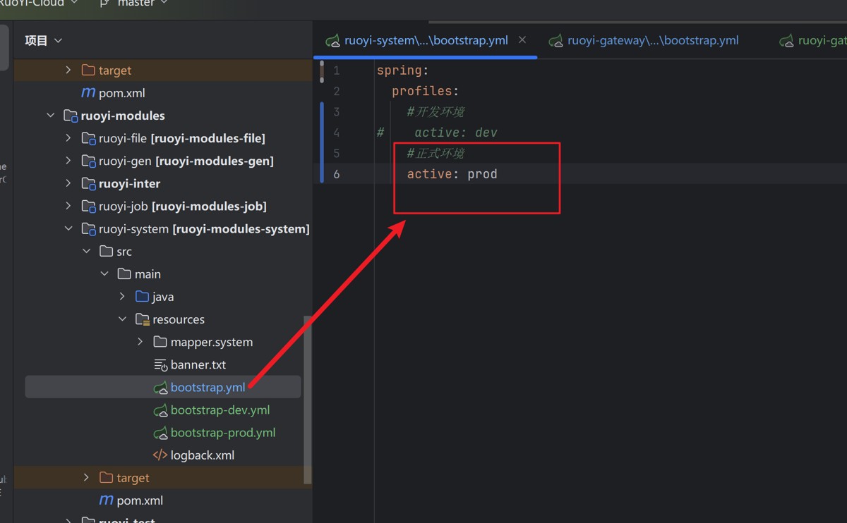 到此這篇關(guān)于ruoyi-cloud通過(guò)bootstrap.yml文件設(shè)置多環(huán)境配置的文章就介紹到這了,更多相關(guān)bootstrap.yml設(shè)置多環(huán)境配置內(nèi)容請(qǐng)搜索腳本之家以前的文章或繼續(xù)瀏覽下面的相關(guān)文章希望大家以后多多支持腳本之家!