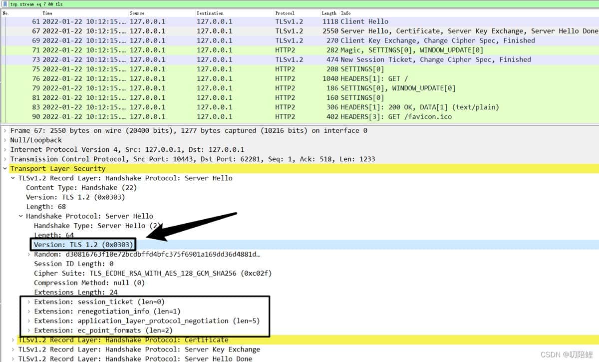 wireshark標(biāo)注tls所屬版本,并不是通過當(dāng)前報(bào)文來標(biāo)注的,而是類似于會(huì)話的方式進(jìn)行標(biāo)注。
