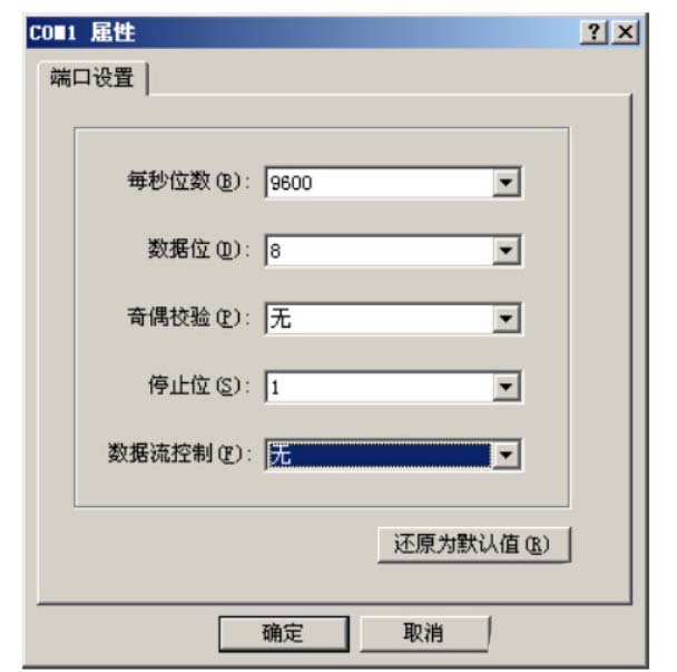 參數(shù)要求:波特率為9600,數(shù)據(jù)位為8,奇偶校驗為無,停止位為1,流量控制為無,選擇終端仿真為VT100。