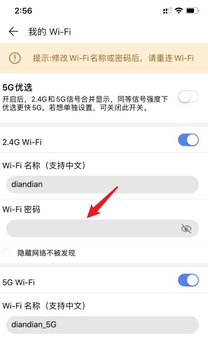 5、點擊進入后,點擊WiFi密碼,清除原有密碼,輸入需要修改的WiFi密碼。