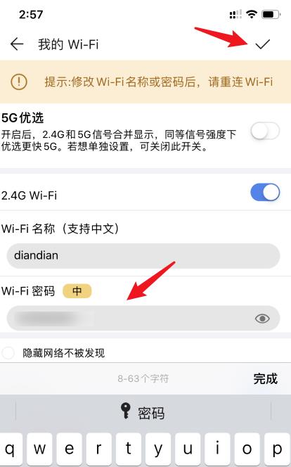6、輸入完畢后,點擊右上方的確定,即可更改WiFi密碼。