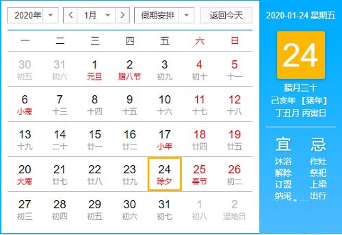 1.2020年春節(jié)放假時(shí)間是2020年1月24日到2020年1月30日