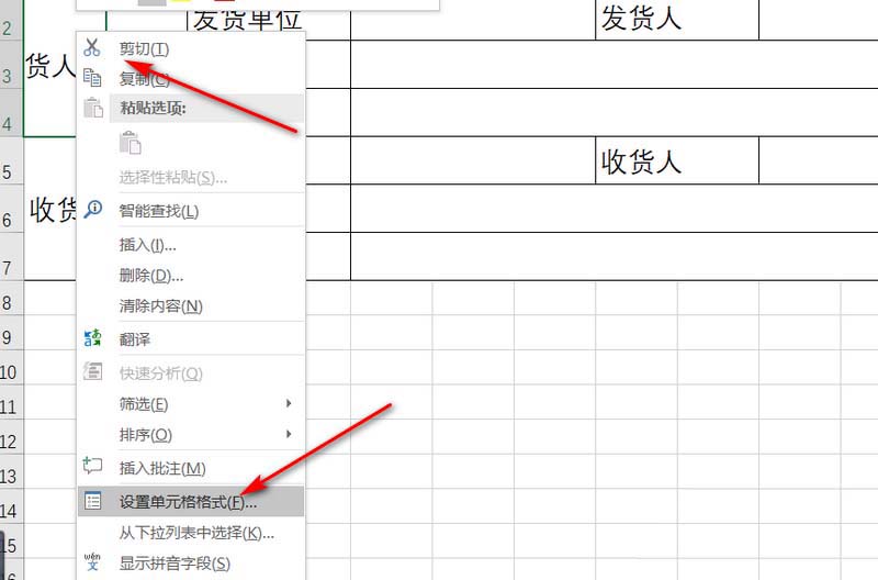 5、鼠標(biāo)右擊【發(fā)貨人信息】單元格,點(diǎn)擊【設(shè)置單元格格式】。