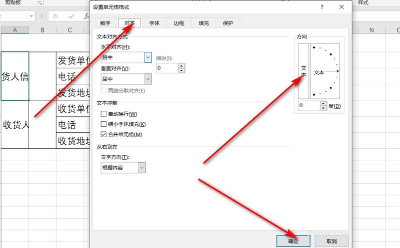 6、點(diǎn)擊【對齊】欄,再點(diǎn)擊【文本】按鈕,再點(diǎn)擊【確定】按鈕。