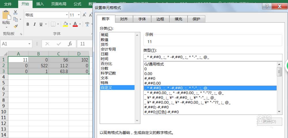 按住Ctrl+1調(diào)出設(shè)置單元格格式,在窗口中選擇“數(shù)字-自定義”在類型下拉列表中選擇“_ * #,##0_ ;_ * -#,##0_ ;_ * "-"_ ;_ @_ ”即可