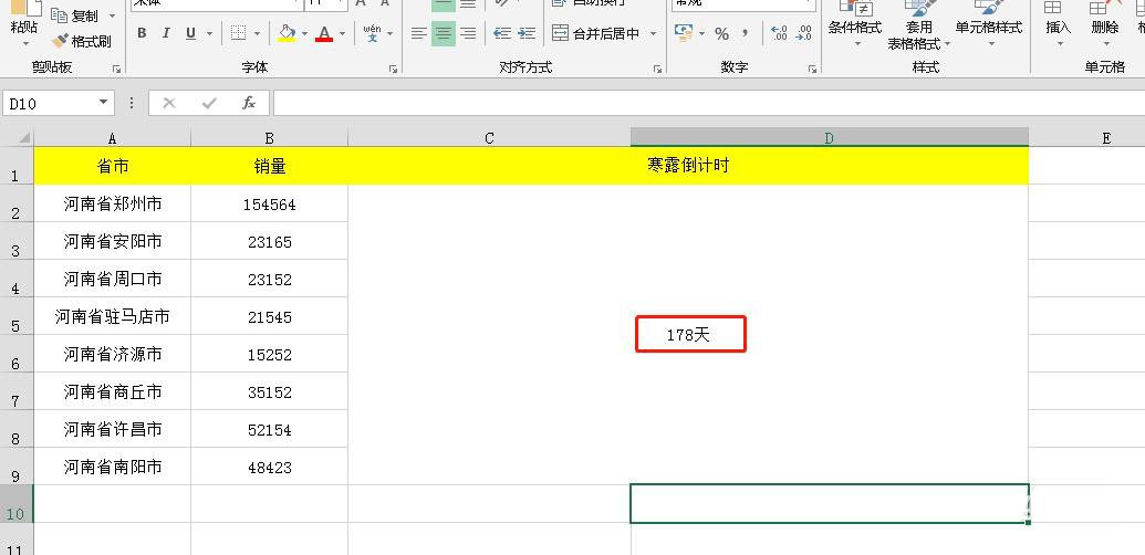 Excel表格怎么制作寒露倒計(jì)時(shí)效果?