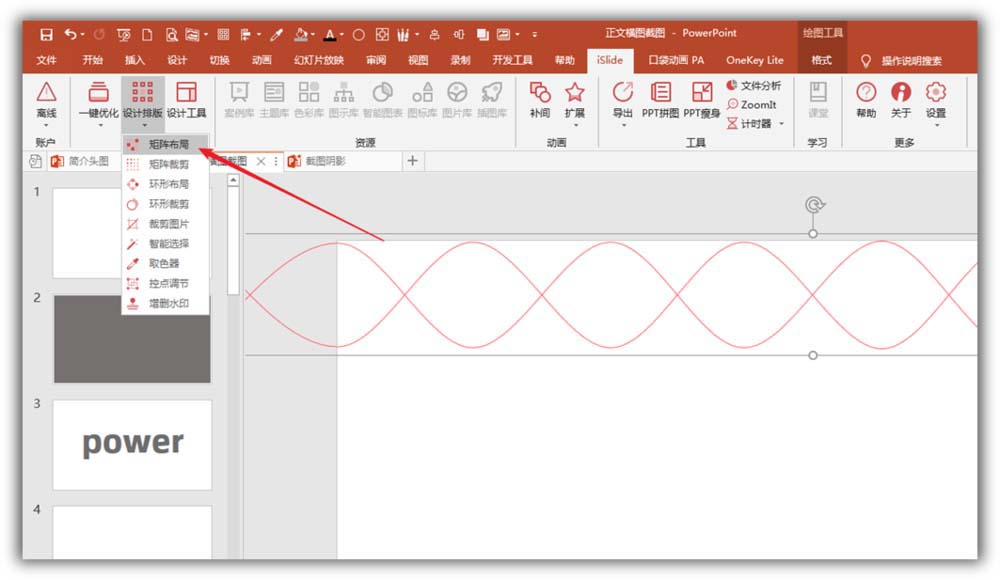 7、把兩根曲線組合起來,點(diǎn)擊iSlide菜單下的矩陣布局。