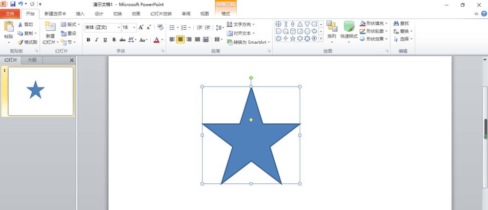 1、打開PPT2010,從“形狀”中插入一個(gè)“五角星”。