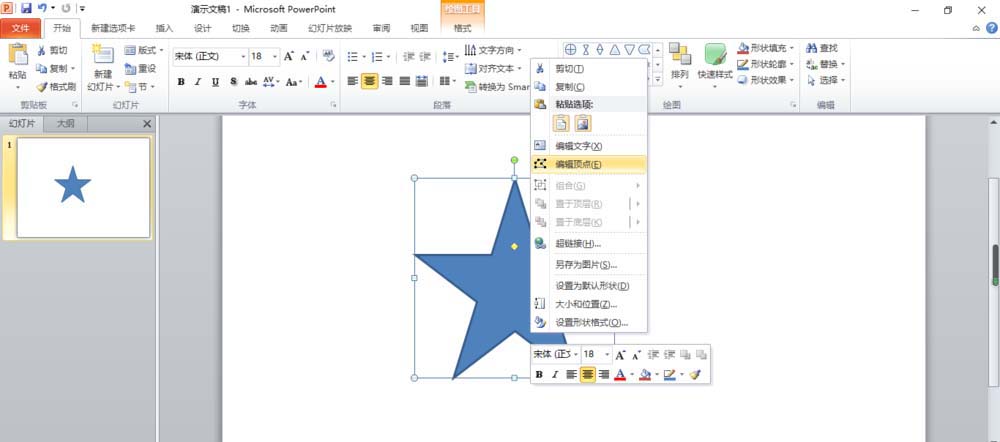 2、右擊五角星,在快捷菜單中選擇“編輯頂點(diǎn)”。