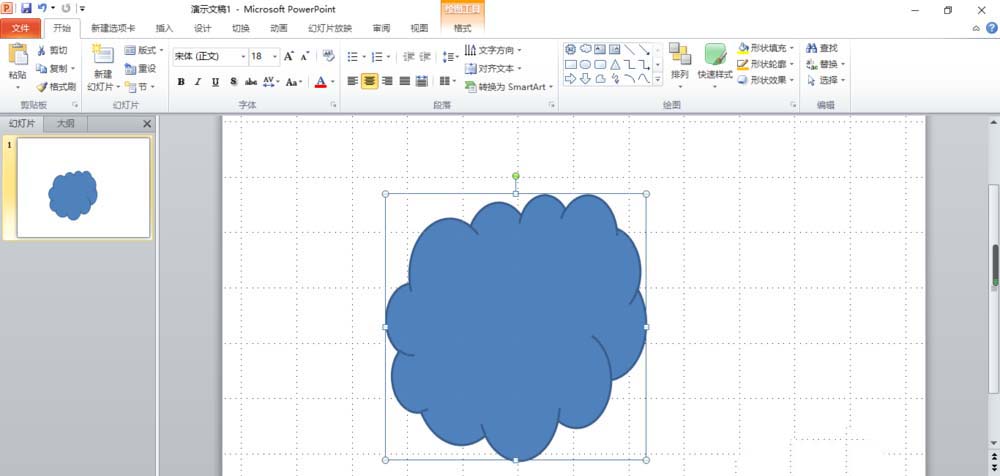 1、打開PPT2010,從“形狀”中插入一個(gè)“云朵”形狀。