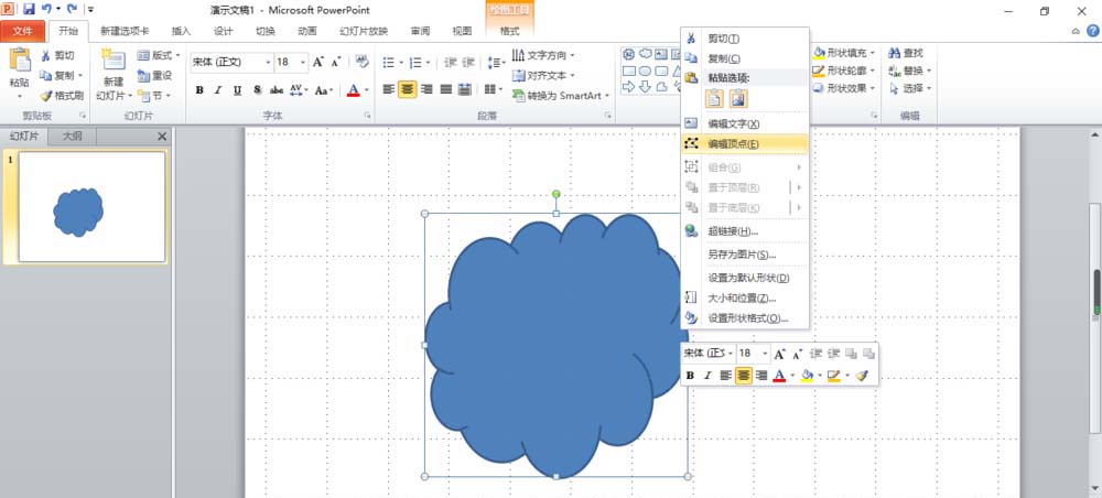 2、右擊插入的云朵形狀,在快捷菜單中選擇“編輯頂點(diǎn)”。