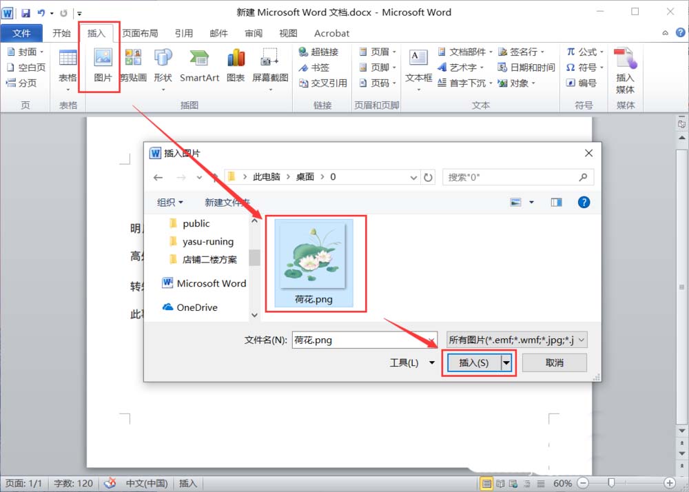 4、點(diǎn)擊“插入”-“圖片”,選擇“圖片”后,點(diǎn)擊“插入”。